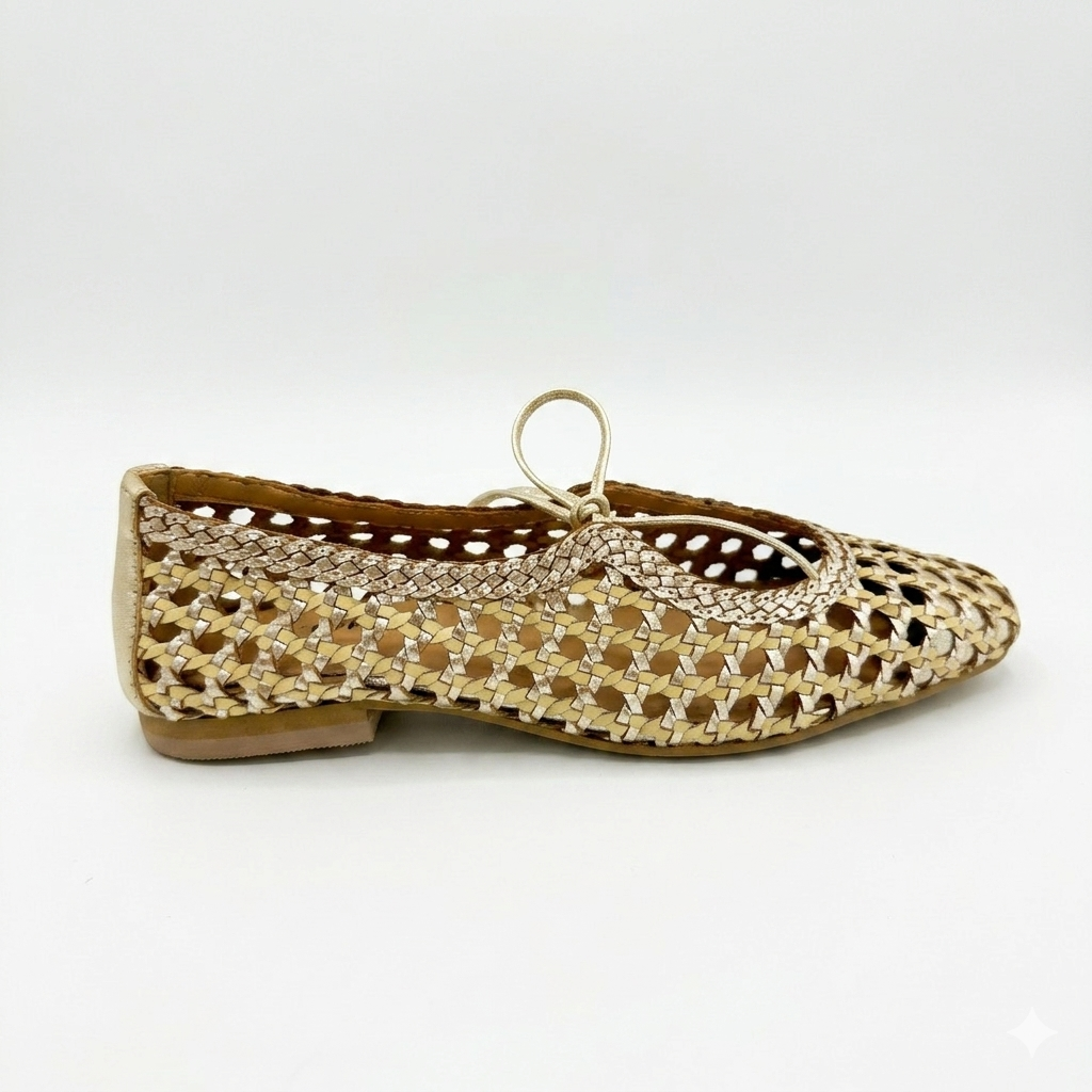 Bailarinas de Piel Trenzada Gold & Tan – Artesanía Hecha en España por Gioseppo