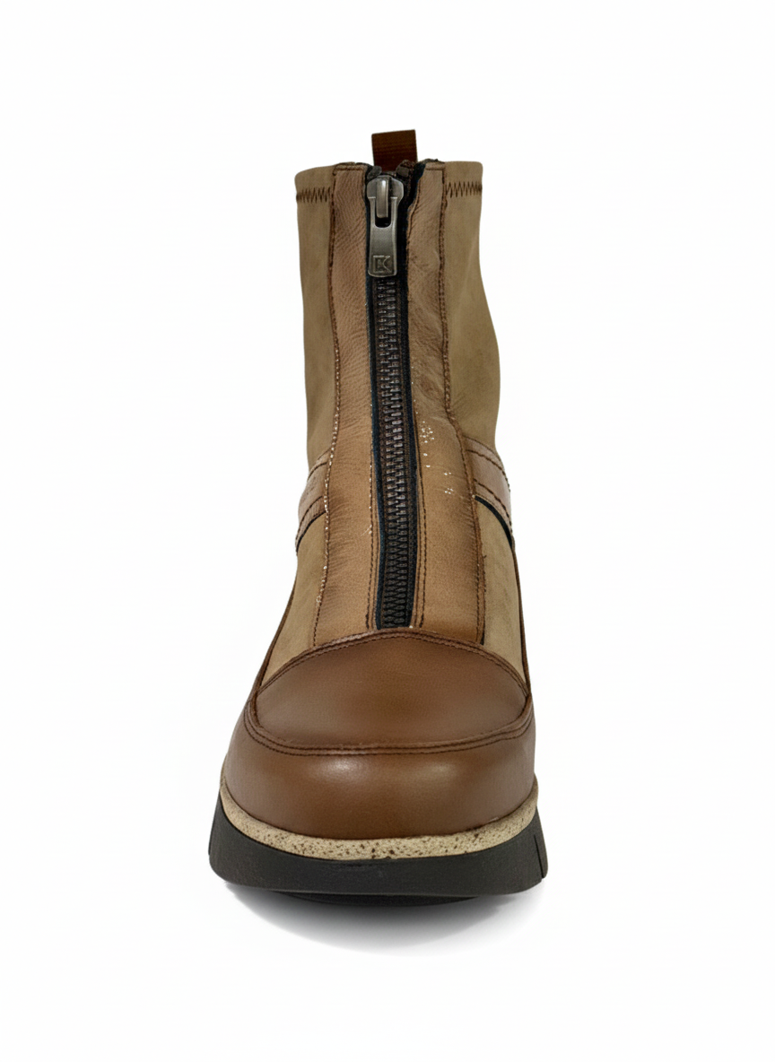 Innovadora Cremallera Frontal: Un elemento central del diseño es la cremallera frontal, que no solo añade un toque contemporáneo y vanguardista, sino que también ofrece una gran facilidad para calzar y descalzar, haciendo de estas botas una opción práctica para el día a día.