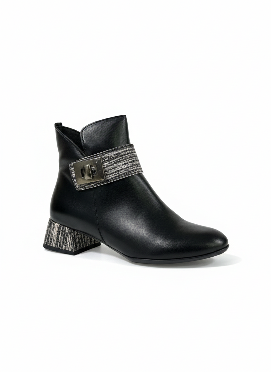 Color Negro Clásico: La atemporalidad del negro ofrece una versatilidad inigualable, permitiendo que estos botines complementen cualquier conjunto, desde los más casuales hasta los más formales.